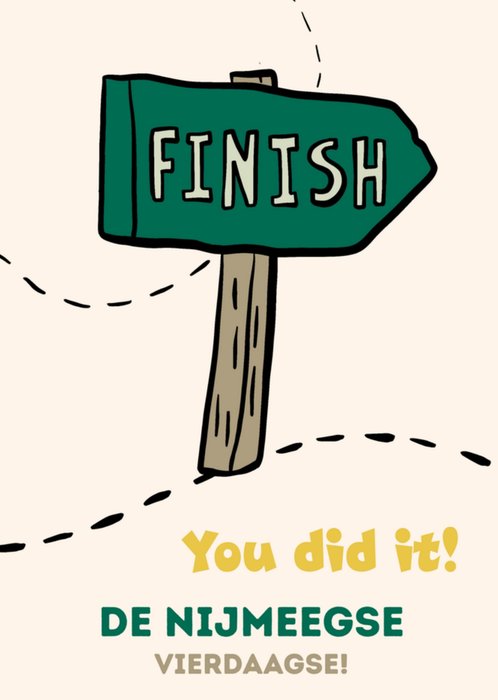 Leuke vierdaagse kaart met met illustratie en de tekst: You did it! De Nijmeegse vierdaagse!