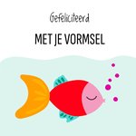 Op deze schattige kaart staat een roze visje met de tekst: Gefeliciteerd met je vormsel.