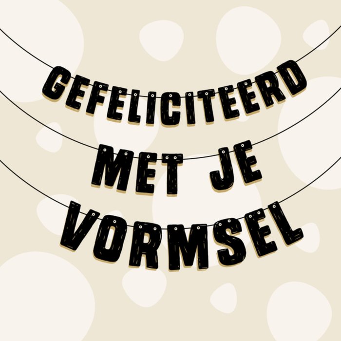 Vormsel kaart met bollen patroon en de tekst: Gefeliciteerd met je vormsel.