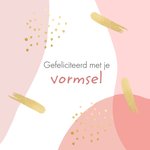Leuke roze vormsel kaart met de tekst: Gefeliciteerd met je vormsel.
