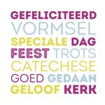 Na het dopen en de communie volgt het vormsel. Feliciteer hem of haar met het behalen van het vormsel met deze vrolijke kaart.