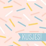 Vrolijke vriendschapskaart met confetti en de tekst: Kusjes!