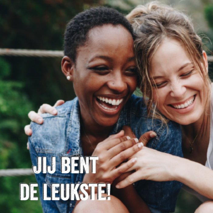 Wie is jouw beste maatje? Stuur deze persoon een leuke vriendschapskaart om te laten weten dat je om deze persoon geeft. Op deze leuke vriendschapskaart van Greetz staat: Jij bent de leukste. Je kunt een foto toevoegen.
