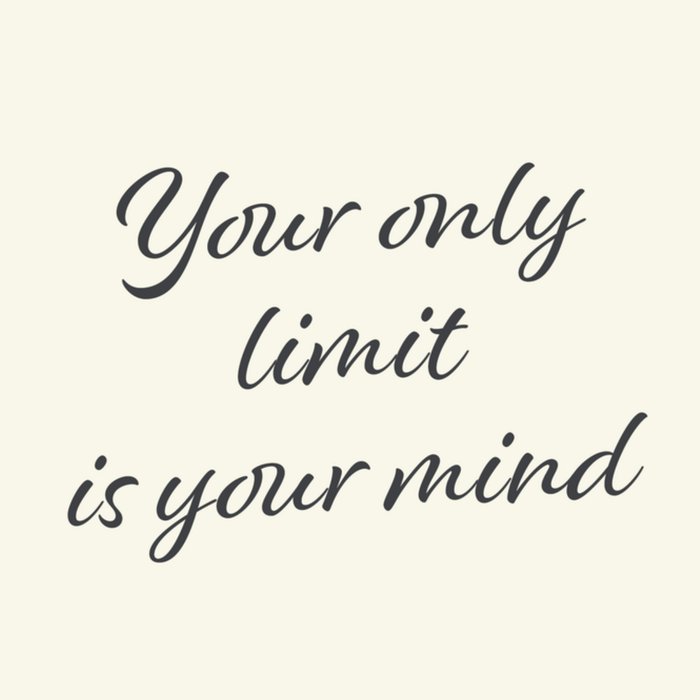 Verras met deze stoere typografiekaart, met de tekst: Your only limit is your mind. De kaart is niet aanpasbaar.