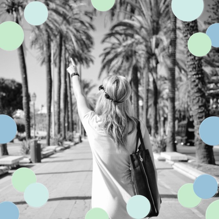 Leuke wenskaart met foto en stippen.