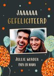 Wat leuk! Je broer krijgt samen met zijn vriendin binnenkort een baby! Stuur daarom deze leuke vrolijke kaart van Greetz. Op de kaart staat: Jaaa. Gefeliciteerd. Jullie worden papa en mama. Je kunt ook een foto toevoegen.