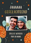 Wat leuk! Je broer krijgt samen met zijn vriendin binnenkort een baby! Stuur daarom deze leuke vrolijke kaart van Greetz. Op de kaart staat: Jaaa. Gefeliciteerd. Jullie worden papa en mama. Je kunt ook een foto toevoegen.