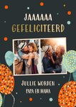 Wat leuk! Je broer krijgt samen met zijn vriendin binnenkort een baby! Stuur daarom deze leuke vrolijke kaart van Greetz. Op de kaart staat: Jaaaa. Gefeliciteerd. Jullie worden papa en mama. Ook kun je twee foto's toevoegen.