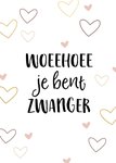 Op deze vrolijke zwangerschapskaart staat: Woeeehoee je bent zwanger.