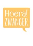 In een gele tekstballon staat 'Hoera! Zwanger'. De achtergrond is wit.
