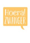 In een gele tekstballon staat 'Hoera! Zwanger'. De achtergrond is wit.