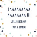 Hoera zwanger! Feliciteer de kersverse ouders to be met dit vrolijke kaartje met de tekst: "Jaaaaa!!! Jullie worden papa & mama!"