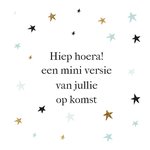 Een leuke geboortekaart met de test 'Hiep hoera! een mini versie van jullie op komst'.