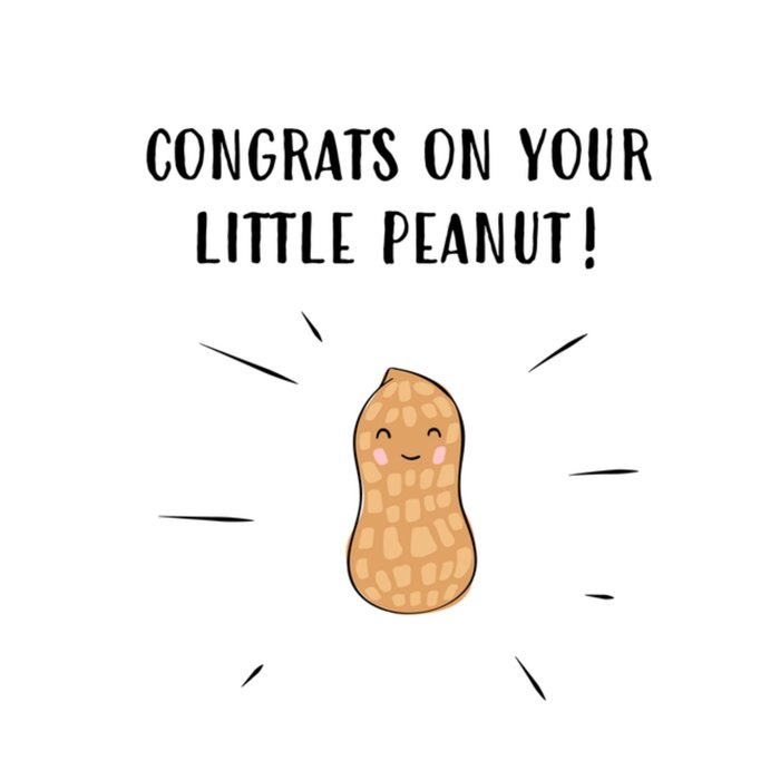 Feliciteer de mama to be met het kleintje in haar buik. Je ziet een pinda met daarbij de tekst: 'congrats on your little peanut!'