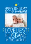 Een leuke verjaardagskaart van Happy Jackson. Op de kaart staat: Happy birthday to the loveliest husband in the world.