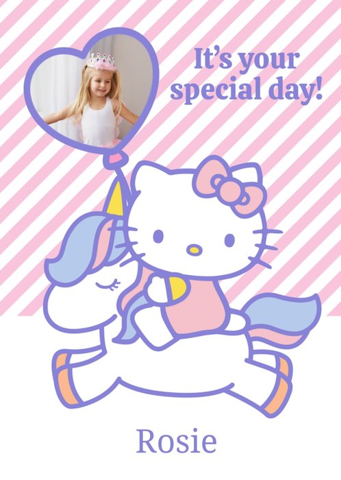Verras met deze schattig Hello Kitty verjaardagskaart. De tekst en foto zijn aanpasbaar.