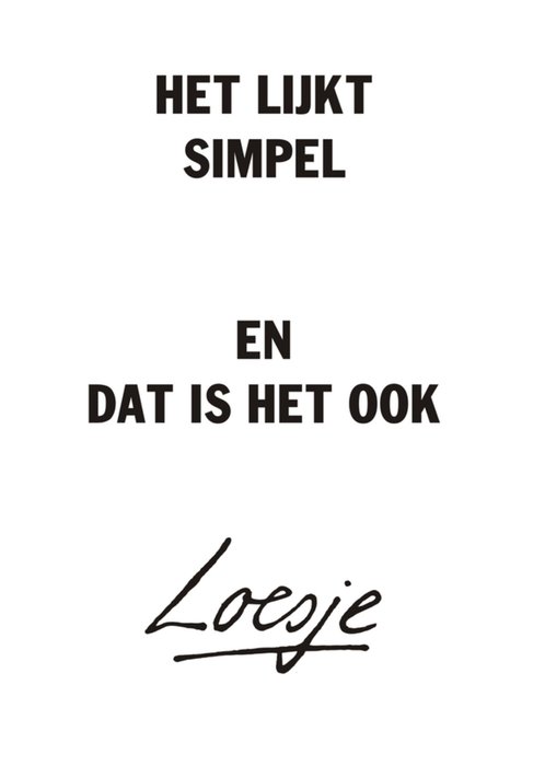 Grappige, witte wenskaart van Loesje, met op de voorkant een grappige spreuk.