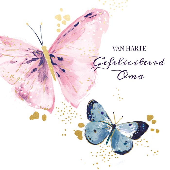 Jij kent iemand die binnenkort jarig is. Stuur daarom deze leuke verjaardagskaart van Hotch Potch. Op de kaart staat: Van harte gefeliciteerd oma.