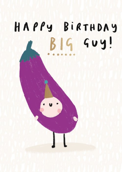 Grappige verjaardagskaart met aubergine illustratie.