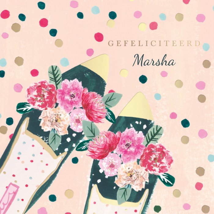 Leuke verjaardagskaart met schoenen illustratie en aanpasbare naam.