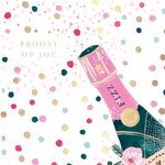 Leuke verjaardagskaart met champagnefles en de tekst: Proost op jou.