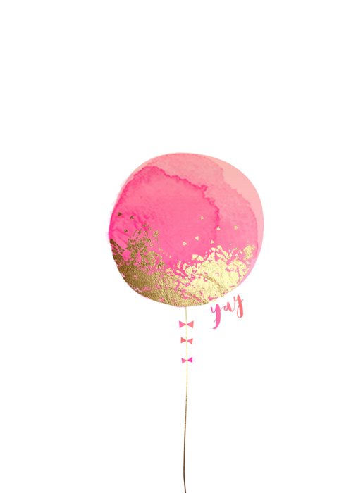 Super leuke verjaardagskaart van HotchPotch om iemand mee te feliciteren. Op de kaart zie je een roze met goude ballon.