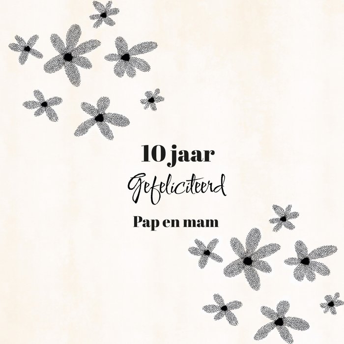 Wauw al zo lang getrouwd! Hoe leuk is het om je ouders daarom te feliciteren met een kaart. Op deze kaart staat: Gefeliciteerd pap en mam.