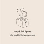 Feliciteer het gelukkige koppel met hun huwelijksjubileum. De kaart (inclusief goeie woordgrap) is aanpasbaar.