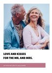 Een witte kaart waarin jouw foto de voorgrond is. Onder de foto staat de tekst "love and kisses for the Mr. en Mrs.". Hieronder staat een rood vaandel waarin je een eigen tekst kwijt kan.