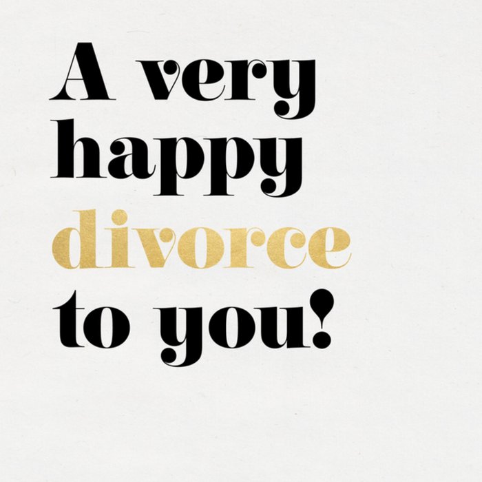 Hé shit. Heeft het huwelijk toch niet gewerkt. Wil je je vriend of vriendin tijdens hun scheiding even oppeppen? Stuur dan een van onze leuke scheidingskaarten van Greetz. Op deze kaart staat: A very happy divorce to you!