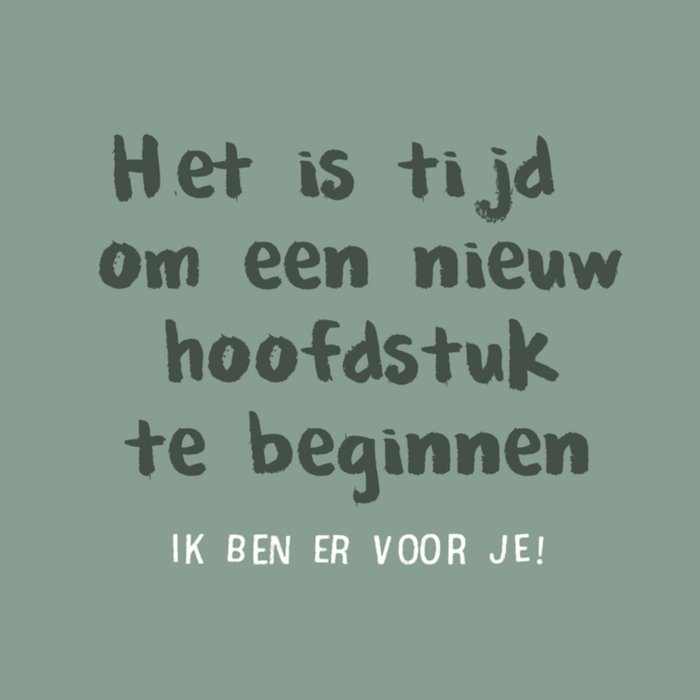 Hé shit. Heeft het huwelijk toch niet gewerkt. Wil je je vriend of vriendin tijdens hun scheiding even oppeppen? Stuur dan een van onze leuke scheidingskaarten van Greetz. Op deze kaart staat: Het is tijd om een nieuw hoofdstuk te beginnen. Ik ben er voor je!