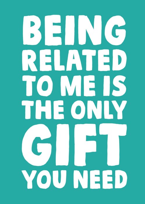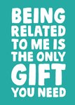 Grappige verjaardagskaart met de tekst: Being related to me is the only gift you need.