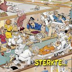 Grappige beterschapskaart met illustraties op de kaart van zieken met de tekst: Sterkte...