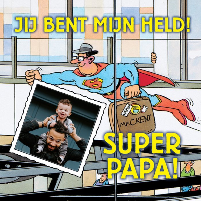 Leuke vaderdagkaart met aanpasbare foto en de tekst: Jij bent mijn held! Super papa!