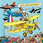Grappige vaderdagkaart uit de Jan van Haasteren collectie. Op de voorkant staat een illustratie van een vliegtuig en allerlei gebeurtenissen.