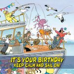 Feliciteer de jarige met deze grappige kaart. Op het schip gebeurt van alles. Onderaan de kaart staat de tekst "It's your birthday keep calm and sail on!"
