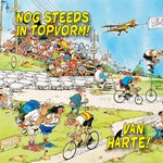 Een leuke illustratie van Jan van Haasteren waar je wielrenners uitgeput ziet fietsen.