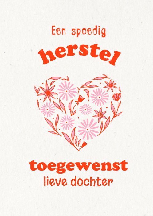 Op deze kaart is een plat getekend met groene bladeren en witroze bloemen. Ook zijn er een paar vlinders te zien. Rechtsonder staat in het groen: 'Van harte beterschap'.