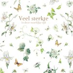 De talloze bloemenaquarellen van Janneke Brinkman zijn een bron van inspiratie voor deze fleurige kaartenserie. De heldere kleuren van aquarelverf brengen de bloemenpracht tot leven op papier. Deze stijlvolle serie biedt voor elke gelegenheid een passende kaart. Wie wil er nu niet verrast worden met één van deze fleurige bloemenkaarten?! Toch op zoek naar een ander design? Bekijk alle condoleance kaarten.Wens iemand veel sterkte en laat weten dat je aan hem of haar denkt in een moeilijke tijd. Rondom de tekst staan lichtgekleurde bloemen en vlinders afgedrukt. Een mooie en vredige kaart om mee te condoleren.