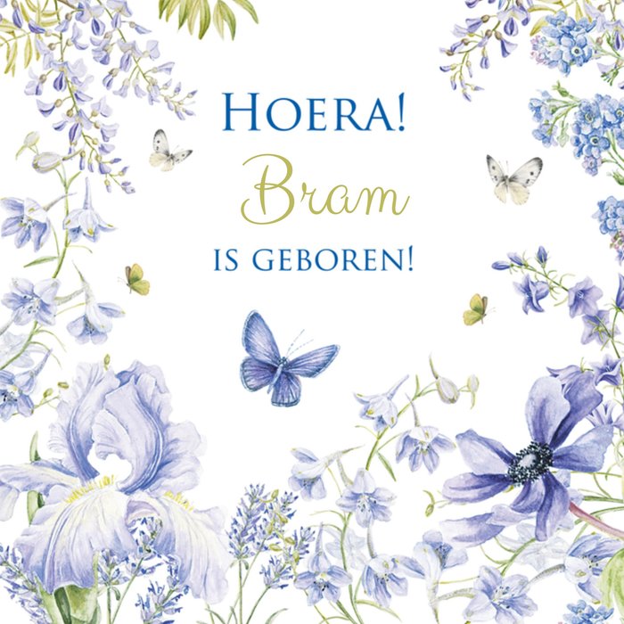 Fleurige geboortekaart met aanpasbare naam.