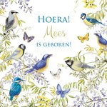 Fleurige geboortekaart met aanpasbare naam.