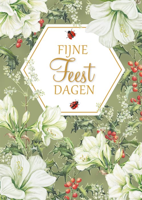 Verras met deze elegante bloemrijke kerstkaart met de tekst: Fijne Feestdagen.