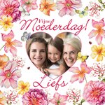 Verras met deze leuke fleurige kaart met bloemen van Janneke Brinkman. Op de kaart staat: Fijne moederdag! Liefs. Ook kun je een foto toevoegen.