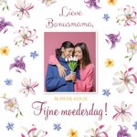 Vrolijke fotokaart met de tekst: Lieve Bonusmama, ik denk aan je. Fijne Moederdag!
