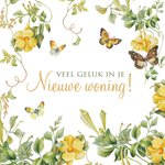 Feliciteer iemand met de nieuwe woning! Op deze kaart met bloemen staat: Veel geluk in je nieuwe woning!