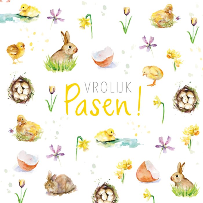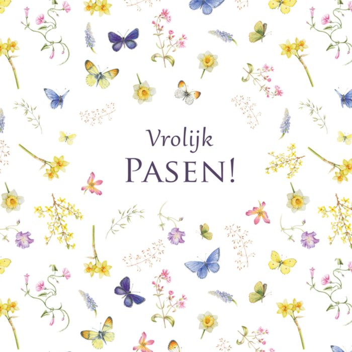 Fleurige paaskaart met de tekst: Vrolijk Pasen!