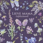 Wat een fleurige verjaardagskaart van Janneke Brinkman. De kaart staat vol met bloemen en vlinders. Ook staat er: Lieve mama. Gefeliciteerd!