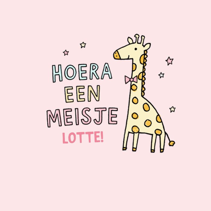 Verras met deze zoet Geboortekaart met de tekst: 'Hoera een meisje.'