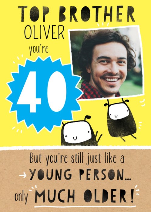 Vrolijke fotokaart met leeftijd en aanpasbare naam.