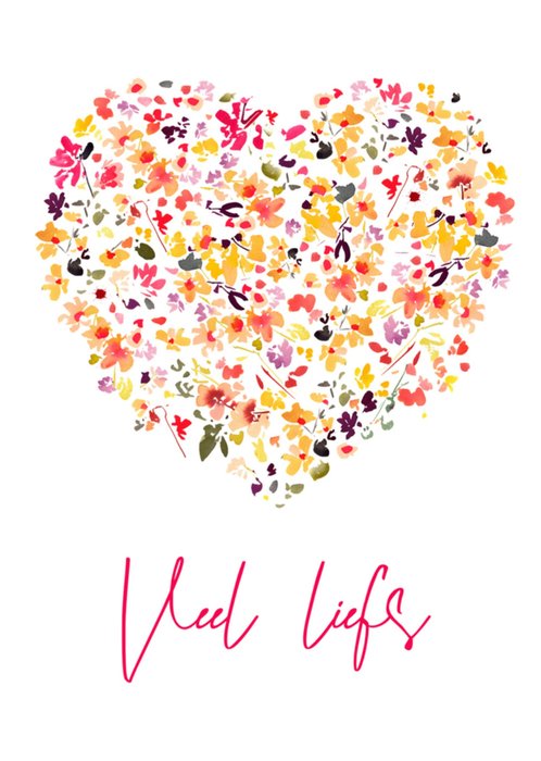 Leuke verjaardagskaart met de tekst: Veel liefs. Vrolijke designs met veel kleur voor ieder moment. Dat zijn de designs van Jewel Branding.